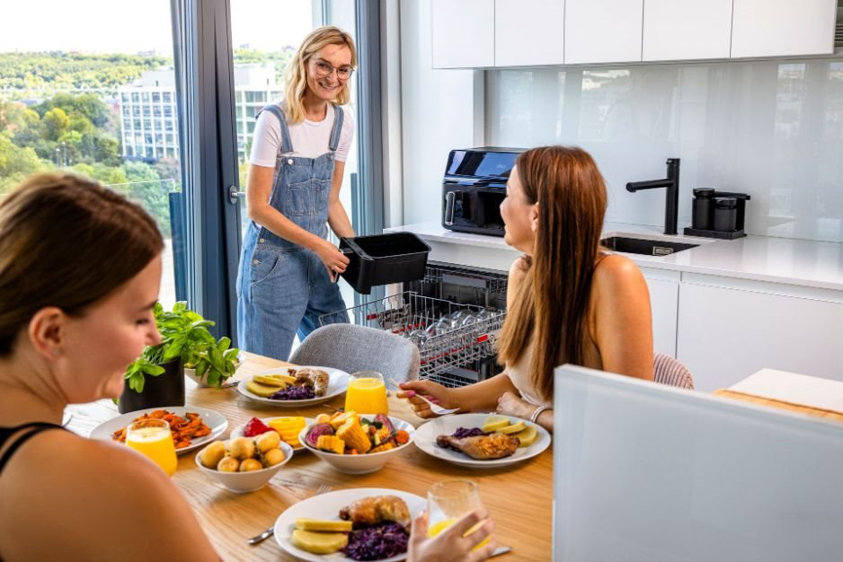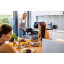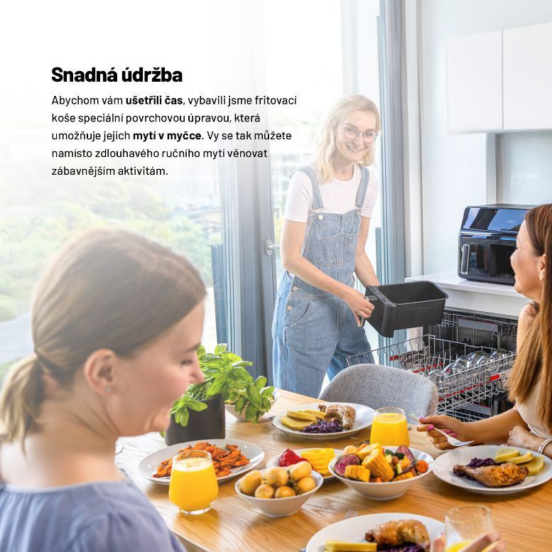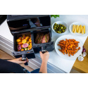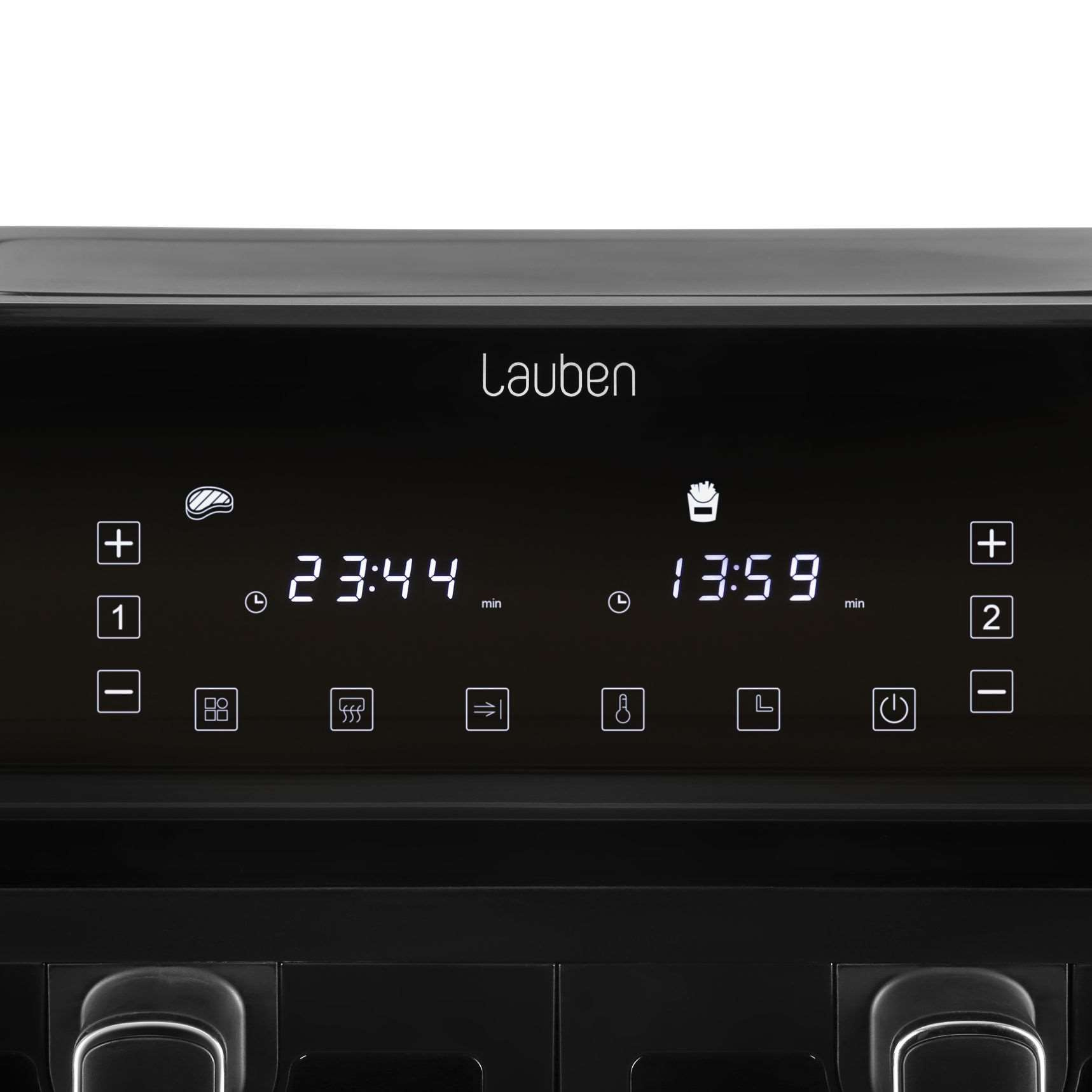 Ovládanie Lauben Air Fryer je intuitívne a zvládne ho každý Požadovaný program si nastavíte na prehľadnom displeji, kde môžete kontrolovať teplotu a dobu prípravy. Vďaka priehľadnej časti fritézy a osvetleniu vnútra môžete pokrm ľahko skontrolovať aj vizuálne. Všetky komponenty, ktoré sa počas prípravy jedla zašpinia, sme vybavili špeciálnou povrchovou úpravou, je teda možné ich umývať v umývačke riadu. Pre maximálne využitie môžete zamestnať oba vnútorné košíky zároveň. Jeden na prípravu hlavného jedla a druhý na prílohu. Precízna technológia DualZone® zaručí vždy dokonalý výsledok. Optimalizuje totiž oba fritovacie koše tak, aby teplota a čas zodpovedali presne zadaným hodnotám. Vy sa medzitým môžete venovať ostatným obľúbeným činnostiam a fritéza Lauben sa postará o zvyšok.