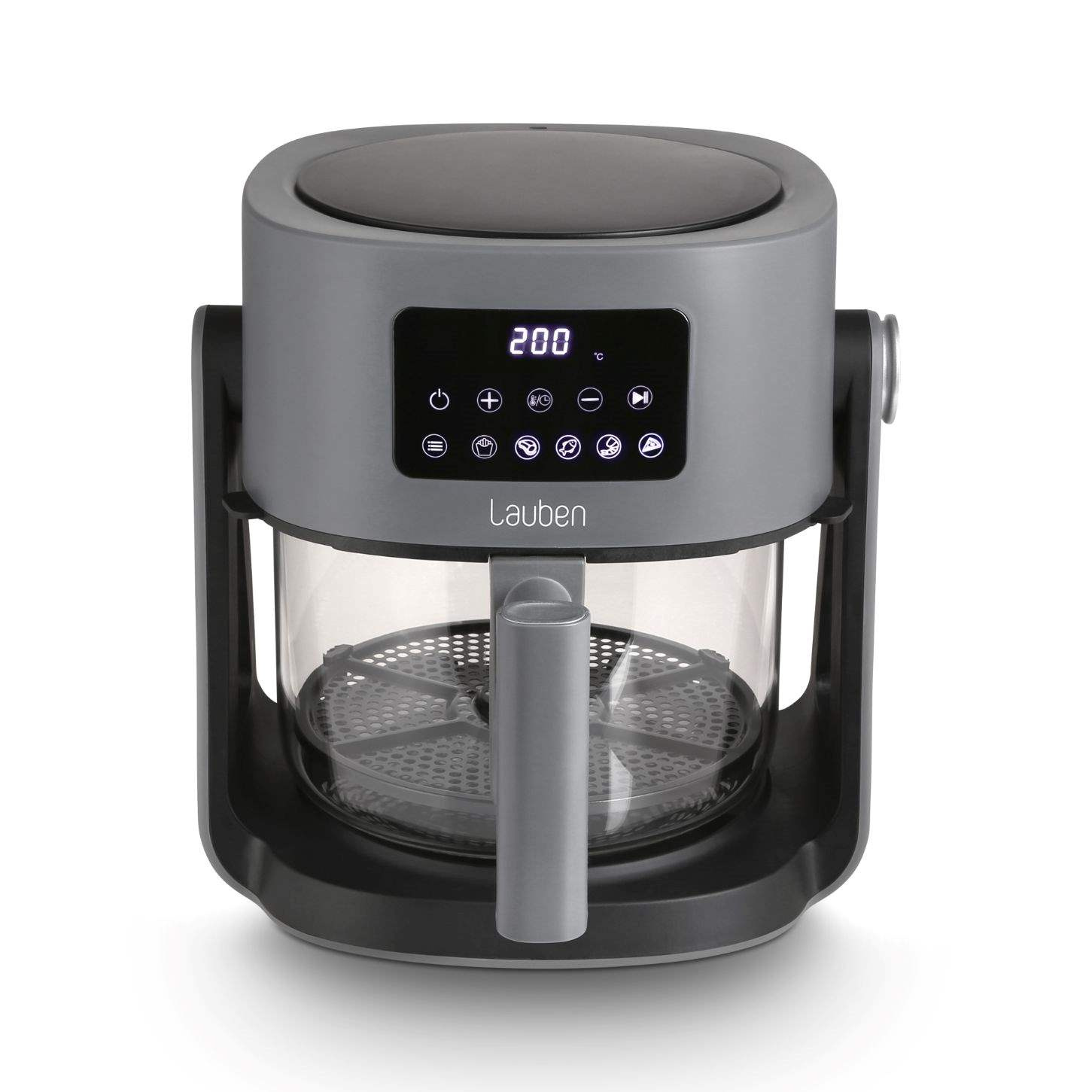 Zdravé varenie nebolo nikdy jednoduchšie a nemusíte sa vzdať ani obľúbených vyprážaných pochutín. Horkovzdušná fritovacia rúra s grilom Lauben Glass&Grill Air Fryer 3in1 5500BG prináša úplne novú dimenziu prípravy jedál využívajúcu až o 80 % menej tuku. Originálny sklenený kôš s viditeľnosťou 360° zabezpečuje ničím nerušenú chuť a arómu jedla, zároveň umožňuje jeho jednoduchú kontrolu počas prípravy, a to aj vďaka vnútornému osvetleniu. Varenie urýchľujú 6 prednastavených programov, no teplotu a čas je možné nastaviť aj manuálne na digitálnom dotykovom displeji. O rovnomerné prepečenie sa stará infračervené svetlo, pomocou otočnej hornej časti o 180° spolu s použitím priloženej grilovacej či hlbokej panvice získate viac možností prípravy. Fritovacia misa je chránená bezpečnostným krytom proti popáleniu, pachový filter zas chráni domácnosť pred nepríjemným zápachom. Čas ušetríte pri varení aj údržbe, príslušenstvo stačí len vložiť do umývačky. Praktické rady na použitie prináša video tutoriál.