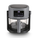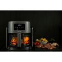 Prehľadným digitálnym displejom si intuitívne zvolíte niektorý zo 6 prednastavených programov na fritovanie hranoliek, mäsa či grilovanie - Fries, Steak, Fish, Shrimps, Pizza, Grill Mode. Čas aj teplotu si však nastavíte aj manuálne podľa potreby. Vďaka unikátnej sklenenej mise s viditeľnosťou 360° a vnútornému osvetleniu máte stále prehľad o priebehu prípravy jedla. Použitý materiál navyše nezanecháva žiadnu pachť či zápach v jedle.