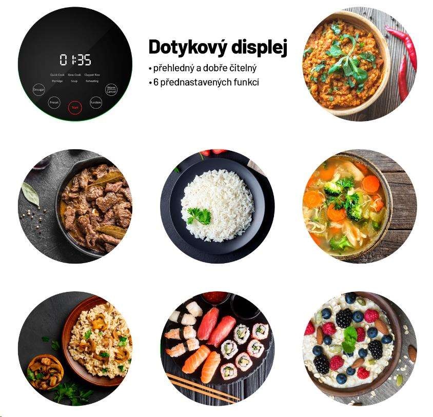 Ovládanie ryžovaru je intuitívne a zvládne ho každý. Požadovaný režim si nastavíte na dotykovom displeji, na ktorom môžete kontrolovať teplotu a dobu varenia. Ryžovar Lauben je zároveň štýlovým dizajnovým doplnkom, vďaka svojmu minimalistickému prevedeniu, za ktoré právom získal dve prestížne dizajnové ocenenia. Ani u jeho funkčnosti nečakajte kompromisy. Vďaka protisklzovým nožičkám zostane vždy na svojom mieste a technológia cool touch zabezpečí, že sa o neho nikdy nespálite.