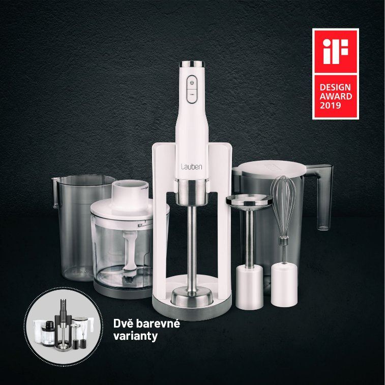 Lauben Stick Blender je príkladom dômyselnej kombinácie funkčného a štýlového dizajnu, za ktorý mu právom patrí prestižné ocenenie IF Design. Nielenže dobre vyzerá, ale vďaka ergonomickému tvaru a protisklzovej úprave sa s ním veľmi ľahko manipuluje a dobre drží. Telo mixéra je zároveň dostatočne pevné, takže nad ním máte absolútnu kontrolu. Oceníte aj praktický stojan, do ktorého umiestnite všetky nadstavce. Mixér vám v kuchyni nezaberie veľa miesta a vaše kuchynské skrinky zostanú upratané. Na výber máte zo dvoch farebných variantov.