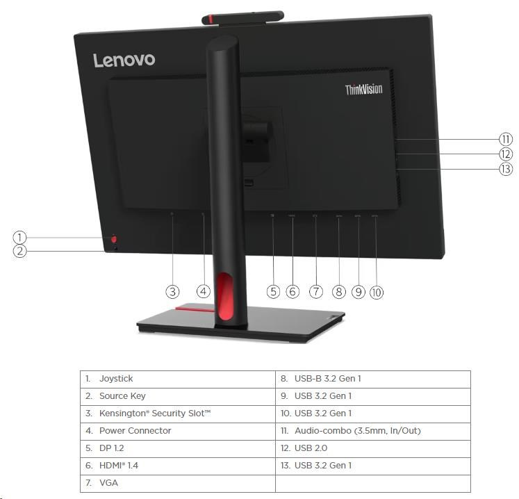 Popis LENOVO LCD T24v-30 - 23.8”,IPS,matný,16:9,1920x1080,178/178,4ms/6ms,250cd/m2,1000:1,VGA,DP,HDMI,4xUSB,VESA,cam,rep,Pivot