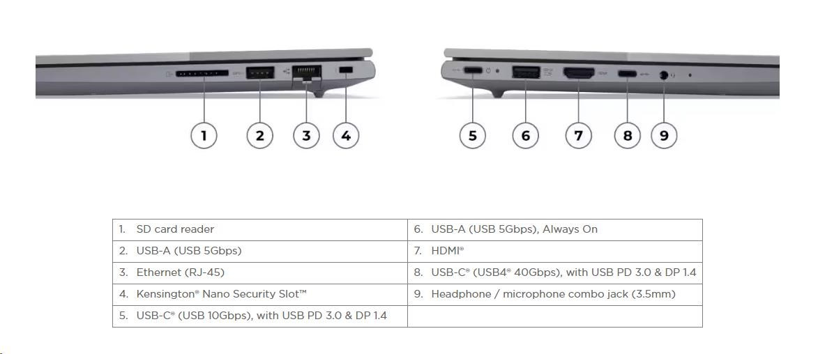 1x USB-C® (USB 10Gbps / USB 3.2 Gen 2), with USB PD 3.0 and DisplayPort™ 1.4