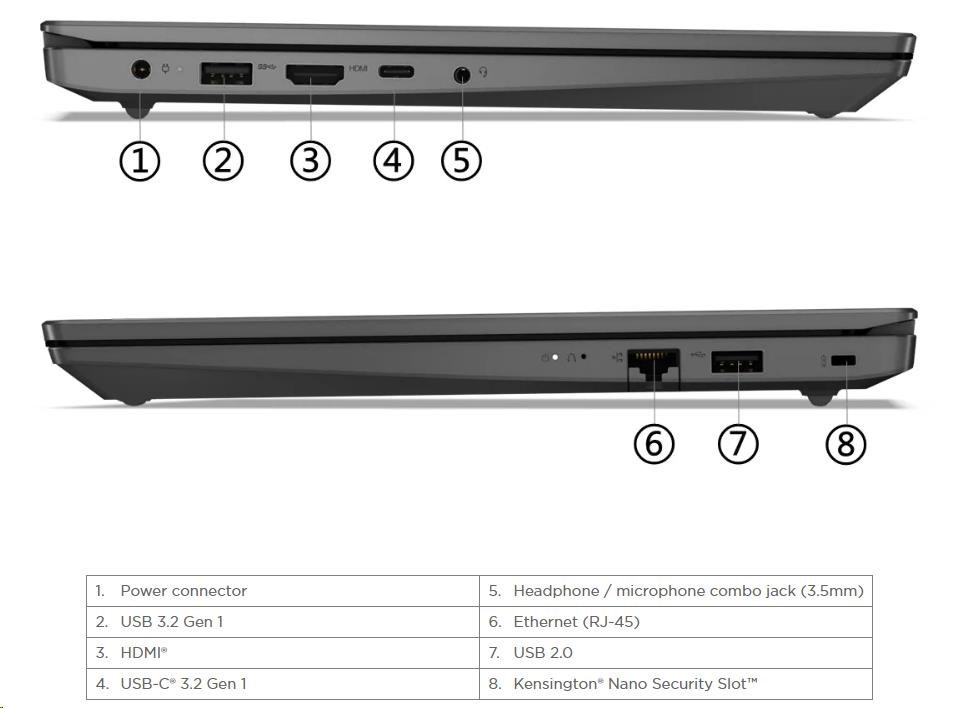 | Standartné porty | 1x Ethernet (RJ-45) 1x HDMI® 1.4b 1x Headphone / microphone combo jack (3.5mm) 1x Power connector 1x USB 2.0 1x USB 3.2 Gen 1 1x USB-C® 3.2 Gen 1 (support data transfer, Power Delivery 3.0 and DisplayPort™ 1.2) |