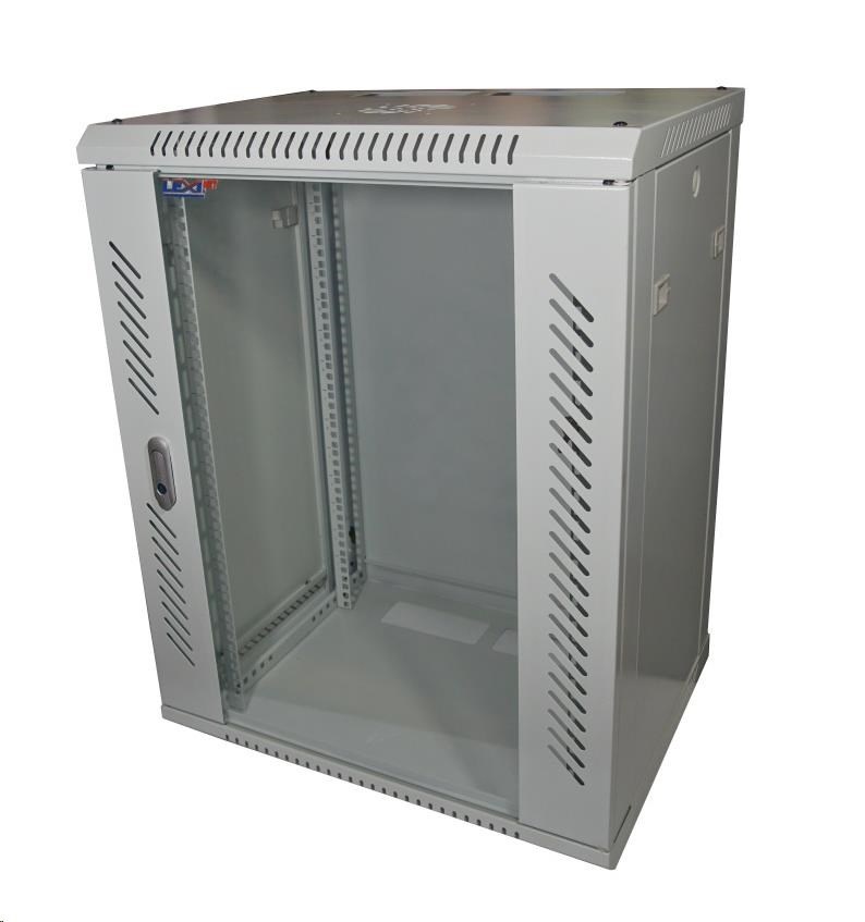 LEXI-Net 19" nástěnný rozvaděč 15U 600x600, nosnost 60 kg, skleněné dveře, svařovaný, šedý