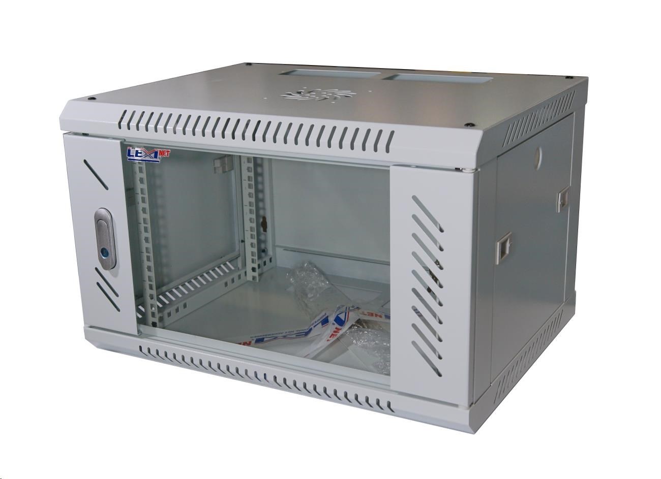 LEXI-Net 19" nástěnný rozvaděč 6U 600x450, nosnost 60 kg, skleněné dveře, rozložený, šedý