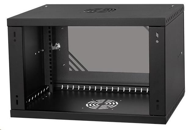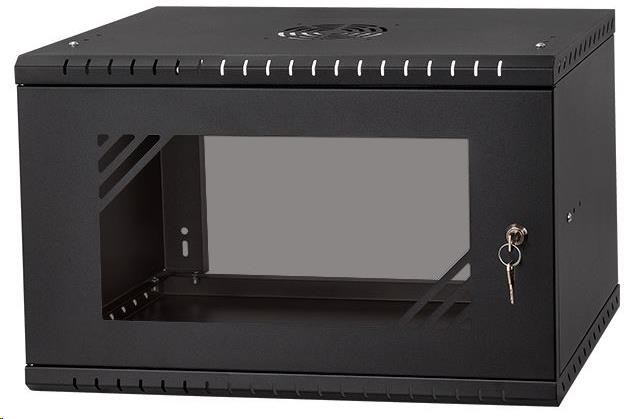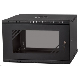 Popis LEXI-Net 19" nástěnný rozvaděč Basic 6U 520x350, skleněné dveře, bez zad, rozložený, černý