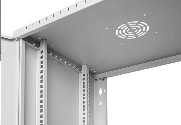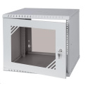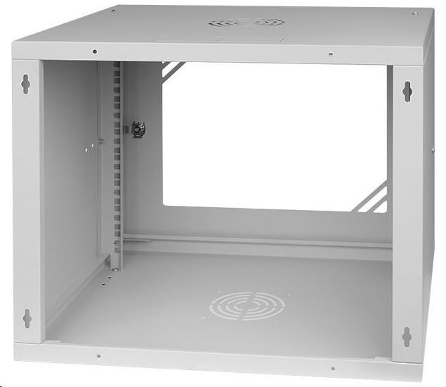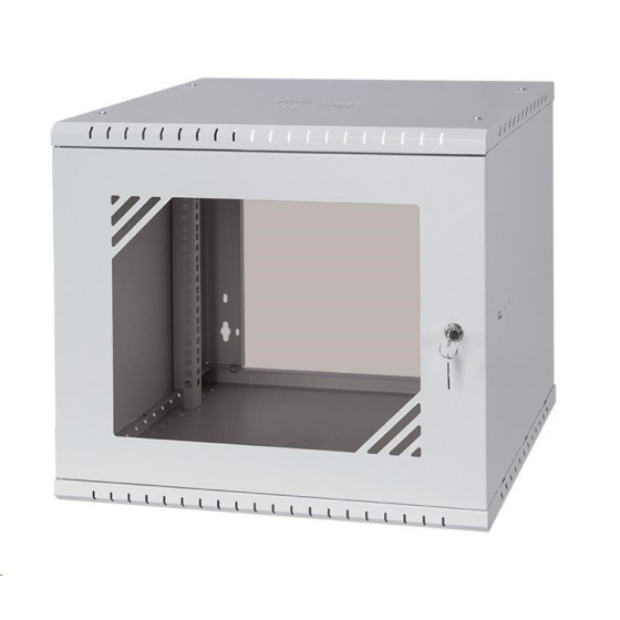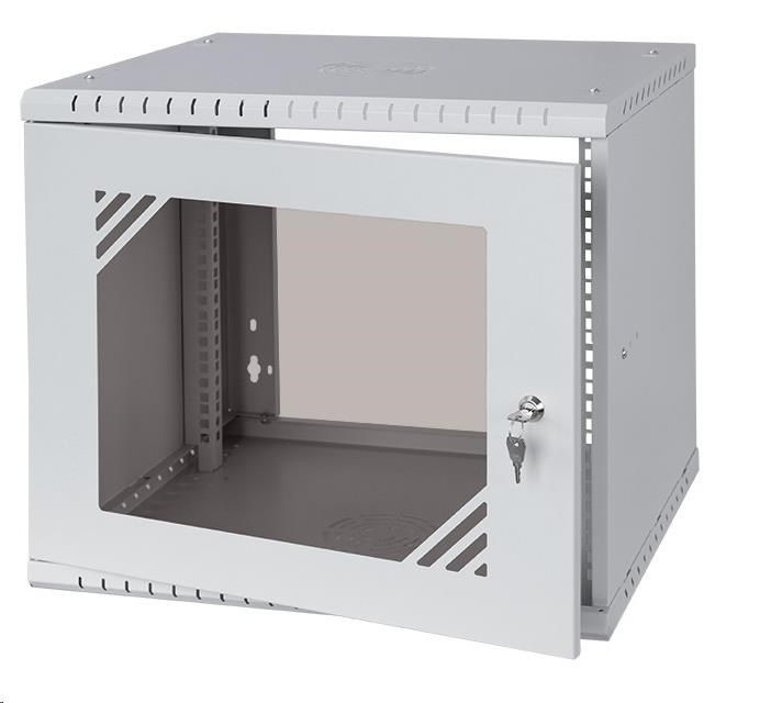 Popis LEXI-Net 19" nástěnný rozvaděč Basic 9U 525x450, skleněné dveře, bez zad, rozložený, šedý