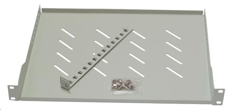 LEXI-Net 19" police s perforací 1U/250mm, nosnost 45kg, zadní nastavitelný úchyt, šedá