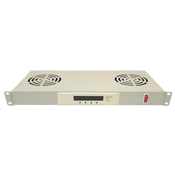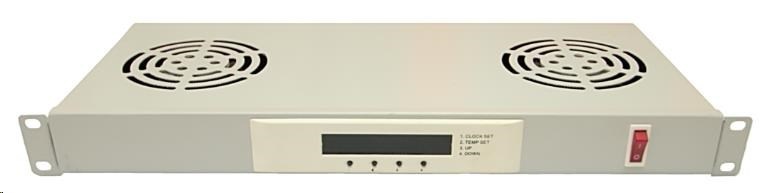 LEXI-Net 19" ventilační jednotka 1U, 2 ventilátory, LCD, digitální termostat, hloubka 200mm, šedá
