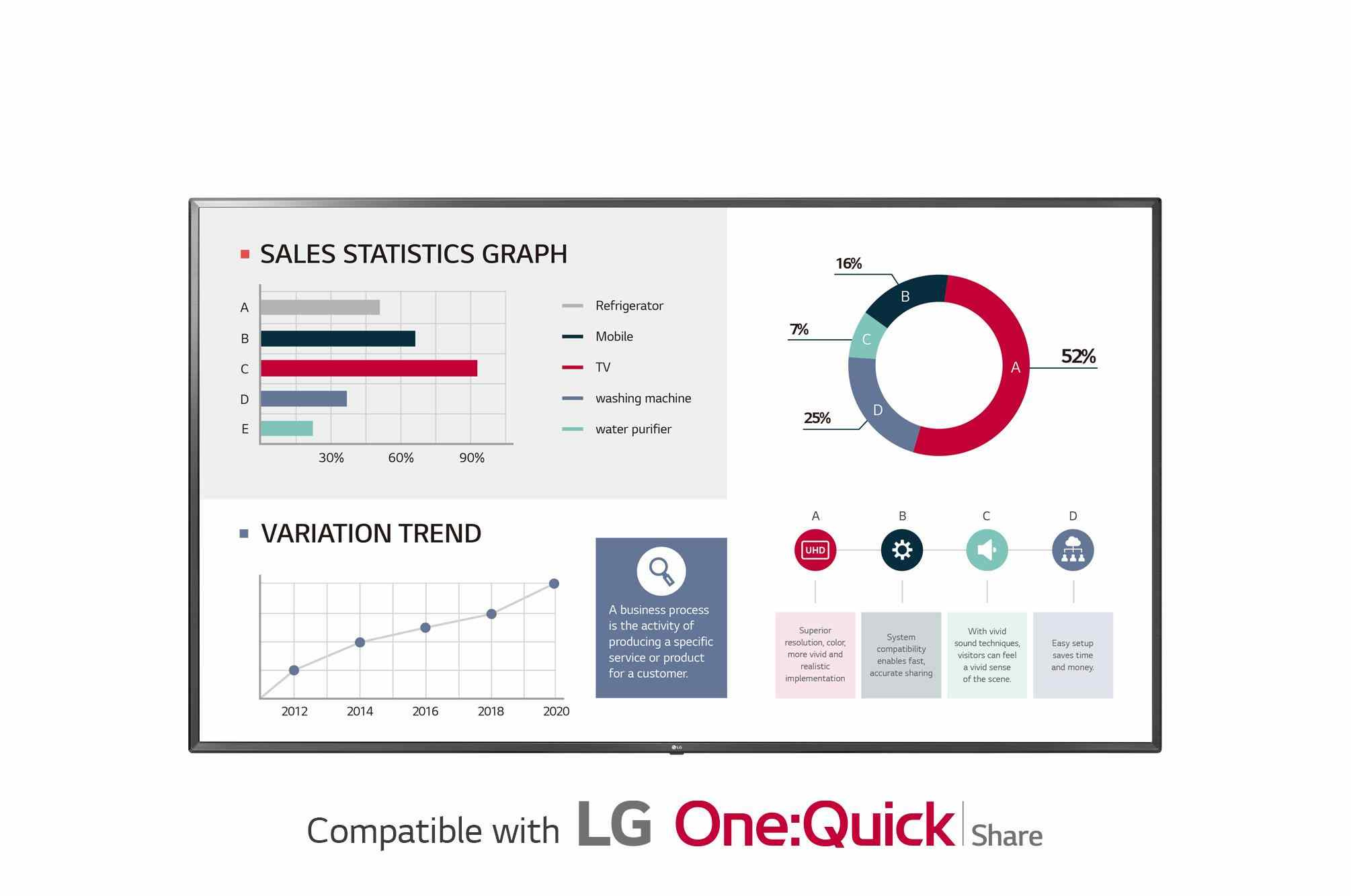 Vstavaný štvorjadrový procesor SoC môže vykonávať viac úloh súčasne a zároveň zabezpečiť plynulé prehrávanie obsahu bez potreby media playera. Platforma LG webOS smart signage taktiež zvyšuje komfort používateľov pomocou intuitívneho grafického používateľského rozhrania a jednoduchých nástrojov na vývoj aplikácií.