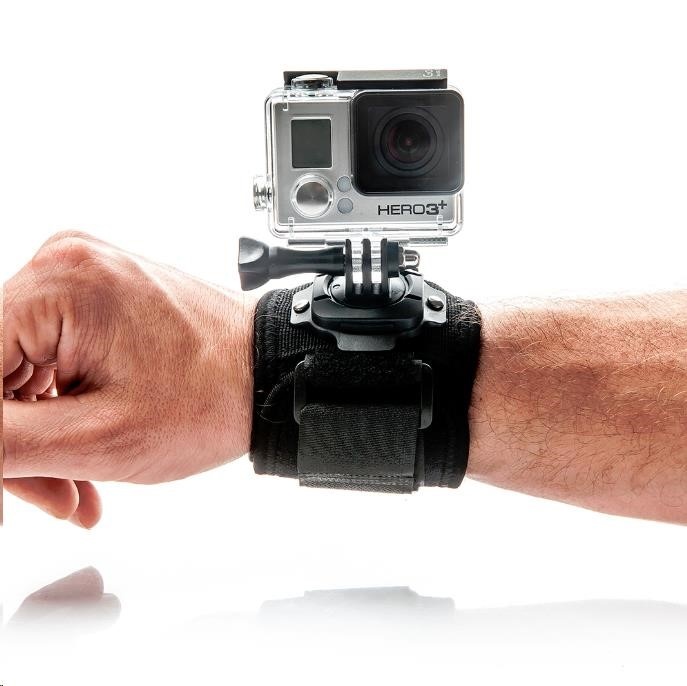 Držiak na zápästie pre kamery GoPro. Pomôže vám zachytiť svet z mnohých rôznych uhlov. Využijete ho pri športe, pri ktorom potrebujete voľné ruky. Držiak je vyrobený z kvalitného materiálu a umiestnite ho aj cez bundu a rukavice. Kameru potom môžete nosiť ako hodinky, a tak zachytávať skvelé zábery. Kameru navyše môžete otáčať o 360° a kedykoľvek využiť poistku, ktorá zabrání ďalšiemu, nechcenému otáčaniu.