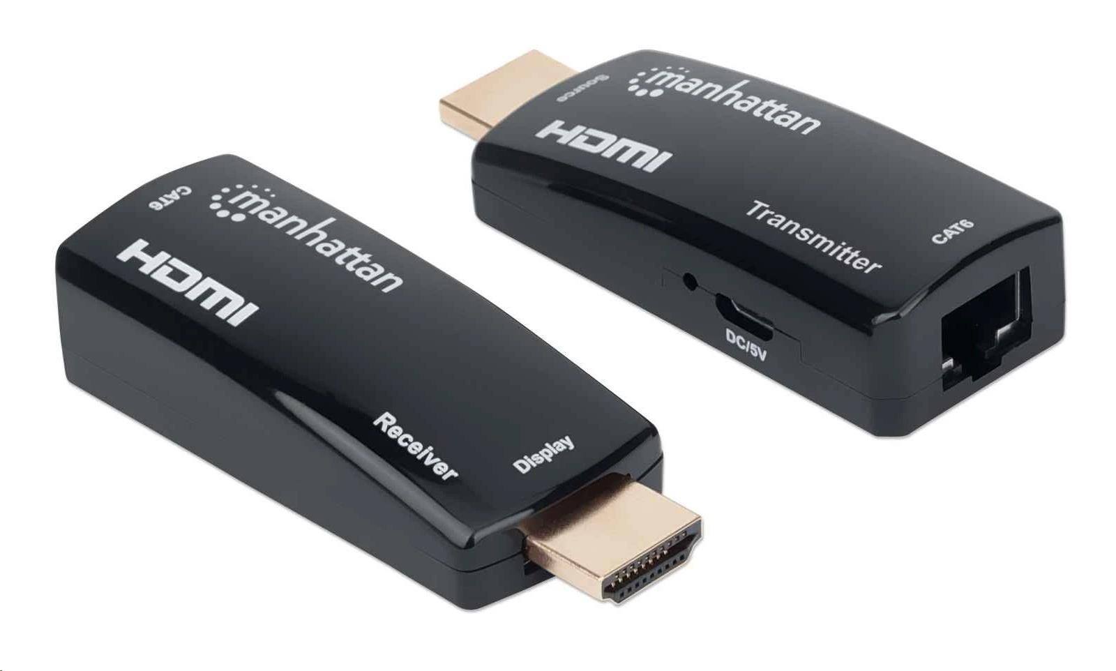 Kompaktná súprava HDMI cez Ethernet 1080p od spoločnosti Manhattan dokáže pripojiť takmer akýkoľvek digitálny zdroj HDMI (napr.g., herná konzola [PlayStation®, Xbox® a ďalšie], prehrávač Blu-ray, satelitný prijímač, digitálny rekordér atď.) k HD displeju alebo projektoru na vzdialenosť až 60 m (196 ft.) s jedným ethernetovým káblom Cat6. Súprava poskytuje spoľahlivý prenos videa s rozlíšením 1080p@60 Hz a viackanálového zvuku na väčšie vzdialenosti ako samotné káble HDMI. Jeho tenký a kompaktný dizajn je ideálny na inštaláciu v stiesnených priestoroch alebo prakticky kdekoľvek.