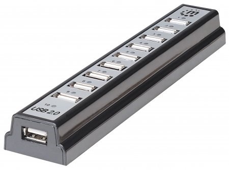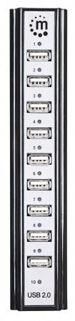 rozbočovač Manhattan Hi-Speed USB Desktop Hub jednoducho rozširuje prístup k rozhraniu USB pre stolové počítače a notebooky a umožňuje pripojiť viac periférnych zariadení a mobilných zariadení. Vďaka 10 extra vysokorýchlostným, spätne kompatibilným portom dokáže rozbočovač Manhattan Hi-Speed USB Desktop Hub spravovať takmer každú rastúcu zbierku zariadení s rozhraním USB. Je ideálny na dobíjanie prehrávačov MP3, mobilných telefónov, digitálnych fotoaparátov a iného mobilného príslušenstva a na pripojenie klávesníc, myší, webových kamier, flash diskov, čítačiek kariet a ďalších zariadení. Kompaktné a odolné plastové puzdro má na bočnom paneli porty napájania a rozbočovača k počítaču, ktoré pomáhajú lepšie organizovať pripojenia a minimalizovať neporiadok káblov. Plug and Play s funkciou hot-swap, kompatibilita so systémami Windows7/8 a Mac a rýchlosť prenosu dát až 480 Mb/s pomáhajú rozbočovaču Manhattan Hi-Speed USB Desktop Hub konsolidovať početné, menej schopné rozbočovače do jedného riešenia USB.