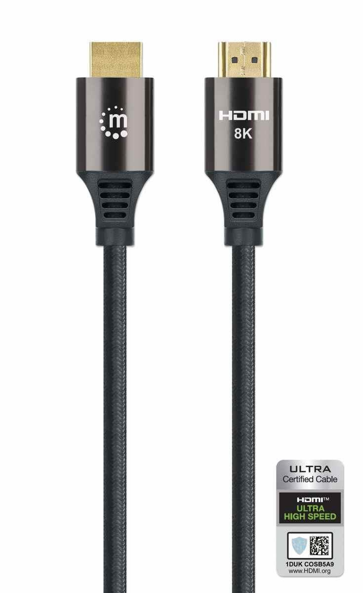 HDMI Male to Male, 1 m (3 ft.), Supports 4K@120Hz, 48G, Dynamic HDR, HEC, eARC, Gold-plated Contacts, Braided Design, Black