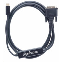 Adaptérový kábel Manhattan USB-C na DVI prenáša video signál USB do projektora DVI, plochého displeja, televízora alebo podobného zariadenia. Zabudované obvody umožňujú nadšencom digitálnych médií jednoducho si vychutnať multimediálny obsah založený na USB na HD displeji alebo televízore pri súčasnom príjme A/V na zdroji. Jeho schopnosť vysokého rozlíšenia podporuje rozlíšenie až do 2520x1600@60Hz a 1080p, aby mohol slúžiť pre širokú škálu rozlíšení v mnohých zariadeniach a HD aplikáciách vrátane školení, maloobchodu a obchodných výstav. Zdrojové zariadenie musí podporovať režim DP Alt. Bez problémov prenáša digitálny obsah uložený v smartfóne, tablete, ultrabooku alebo notebooku na displej so vstupom DVI.