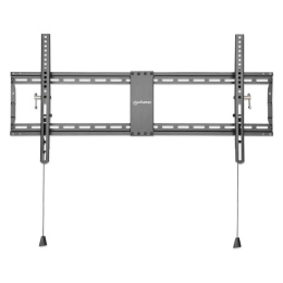 This tilting TV Wall Mount from Manhattan safely holds your TV and offers a toolless +3 to -12° tilt adjustment with the turn of a knob for optimized views. Constructed of 2 mm thick reinforced powder-coated steel, it fits flat and curved LCD, OLED or plasma TVs up to 100" and weighing up to 70 kg (154 lbs.) with VESA compliance up to 800x400. You're all set for a confident above-the-floor installation with an included bubble level that helps get the mount perfectly horizontal on the wall, and intuitive snap-in spring locks with release cords let you easily and securely put the TV in place. It's ideal for residential, office, hospitality, classroom, conference room, digital signage and other commercial applications. An anti-theft opening allows you to attach a padlock to prevent your valuable display from being removed and stolen. p>