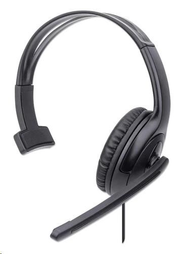 Single-sided Over-ear Design, Wired, USB-A Plug, In-line Volume Control, Adjustable Microphone, Black