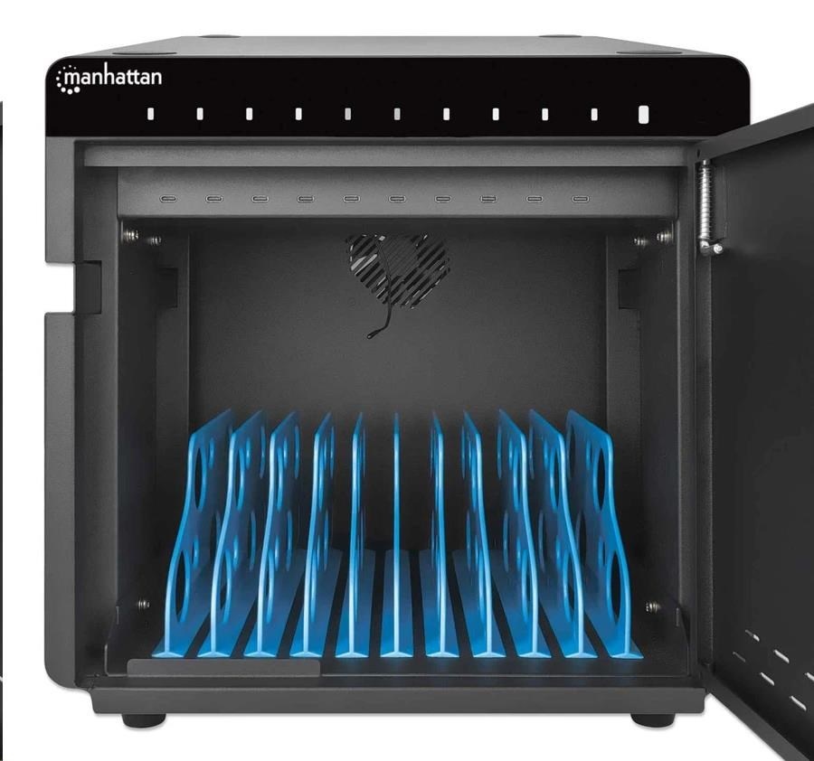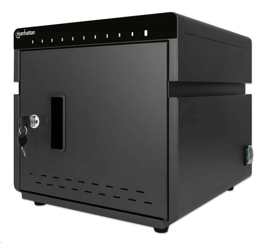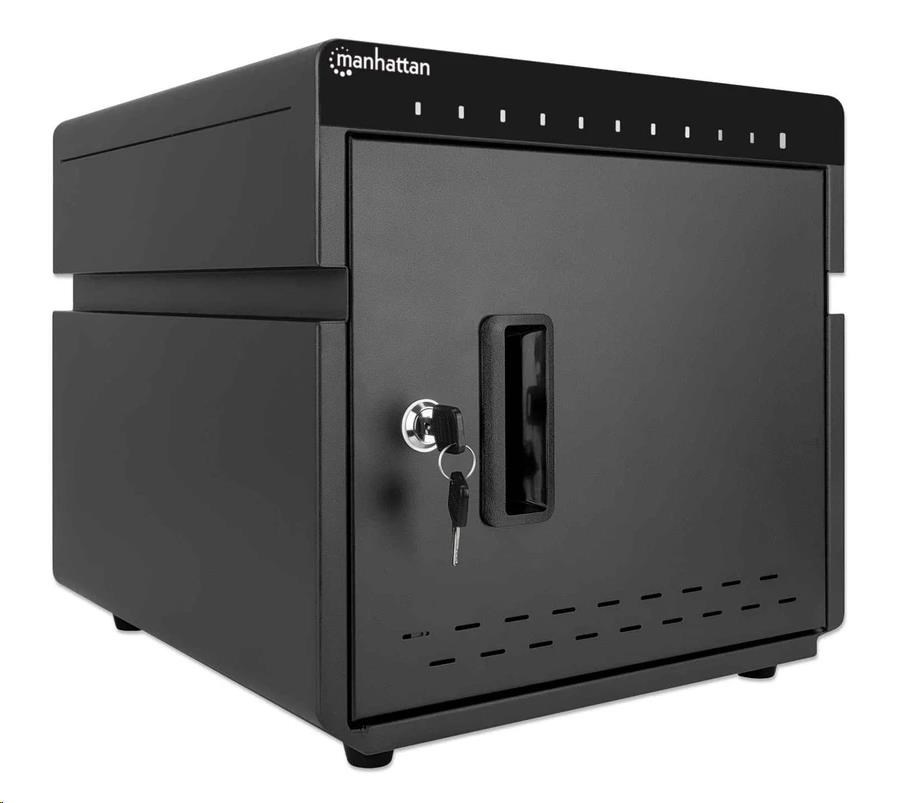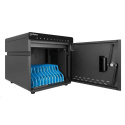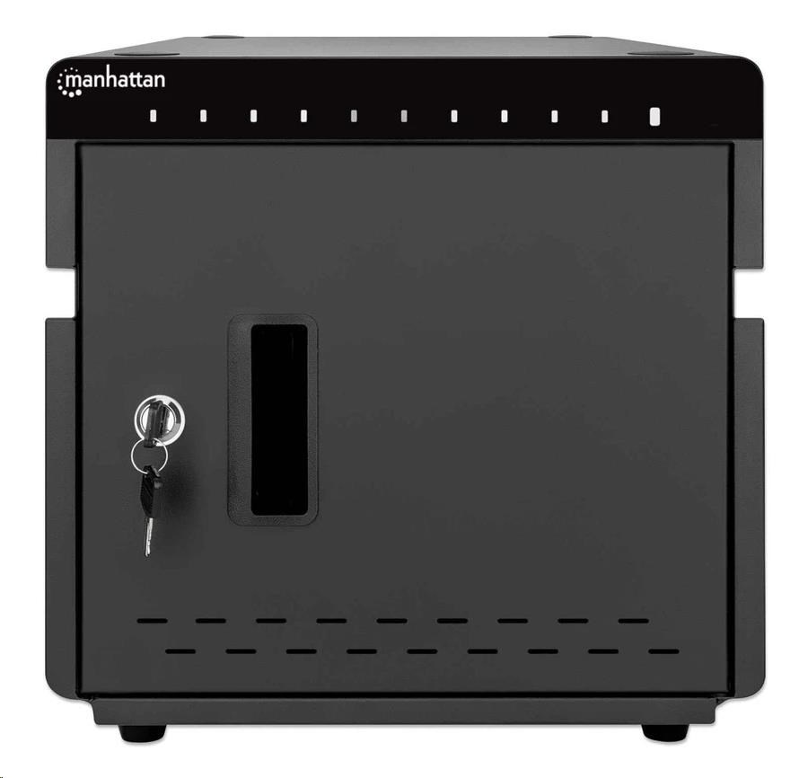 Zlodeji a vandali nemajú šancu proti pevnému a odolnému kovovému krytu tejto stolovej nabíjacej skrine. Bezpečne ho uzamknite pomocou priloženej 2-dielnej sady kľúčov a umožnite prístup len oprávneným osobám. Zabudovaný ventilátor a vetracie otvory odvádzajú teplo a udržiavajú všetky zariadenia v chlade. Gumové nožičky zabraňujú skrinke v skĺznutí na akomkoľvek povrchu.