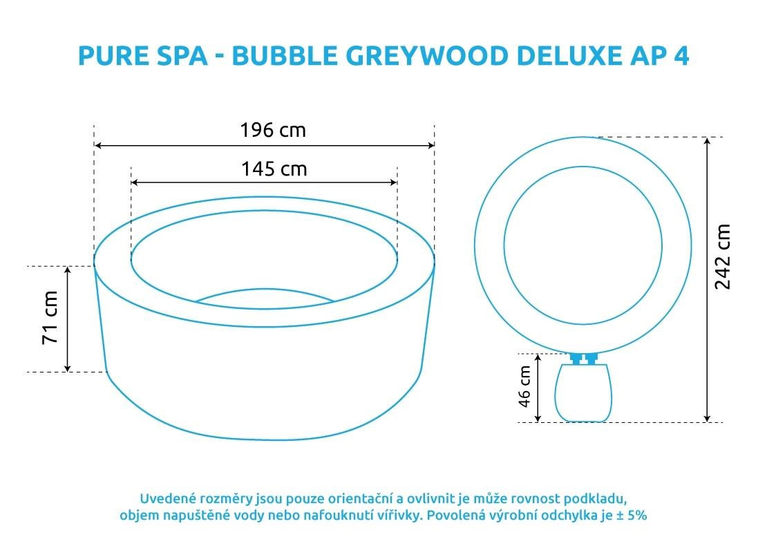 Vlastnosti mobilnej vírivky Pure Spa - Bubble Greywood Deluxe