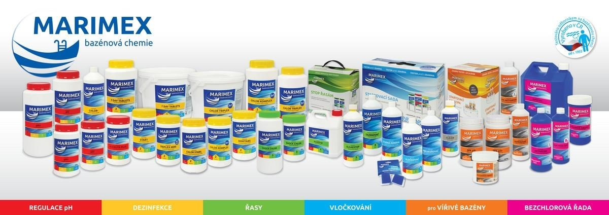 Všetky produkty bazénovej dezinfekcie Marimex sú vyvinuté, vyrobené a balené v Českej republike. Veľmi dôsledne sa kontroluje pôvod všetkých surovín a monitoruje sa priebeh ich spracovania.