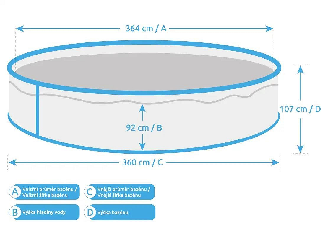 | Průměr bazénu | 3,66 m |