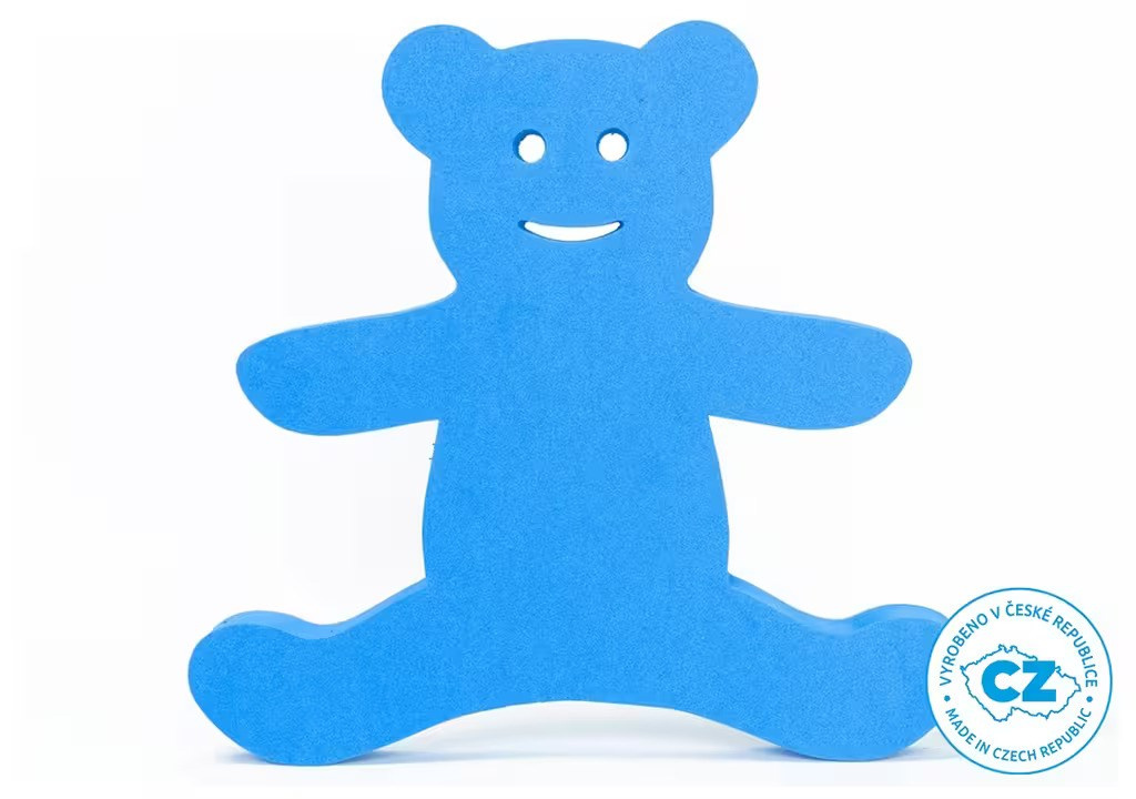 Plavecká doska vo tvare medvedíka, v modrej farbe. Vďaka otvorom sa dá veľmi ľahko uchopiť. Navyše je veľmi ľahká.