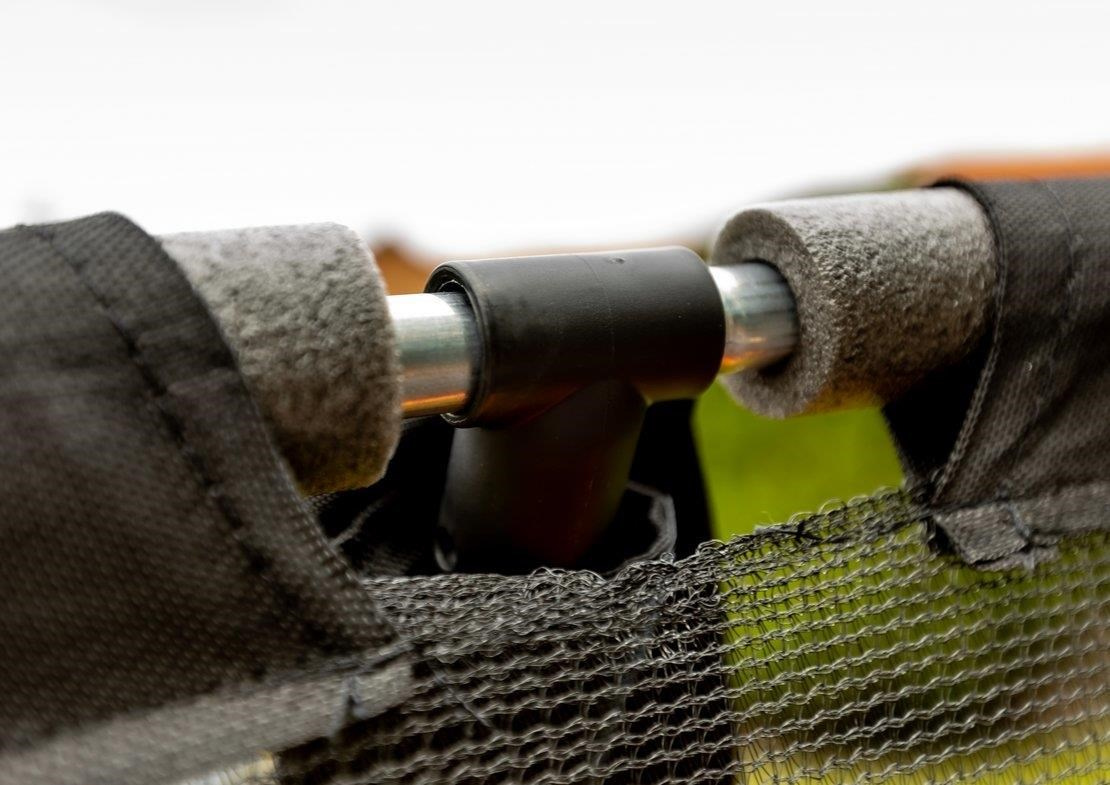 Vnútornú ochrannú sieť nájdete priamo v balení, nemusíte si ju dokupovať zvlášť. Vnútorná ochranná sieť je bezpečnejšia ako vonkajšia sieť - bráni prístupu skákajúceho do časti s pružinami. Vstupný priestor je zabezpečený tromi prackami a bráni vypadnutiu. Tyče sú obalené ochranným návlekom z mäkčenej peny. Nohy trampolíny sú samostatné a zvyšujú stabilitu celej trampolíny. Spojenie tyčí nôh trampolíny a siete je zabezpečené špeciálnymi sponami.