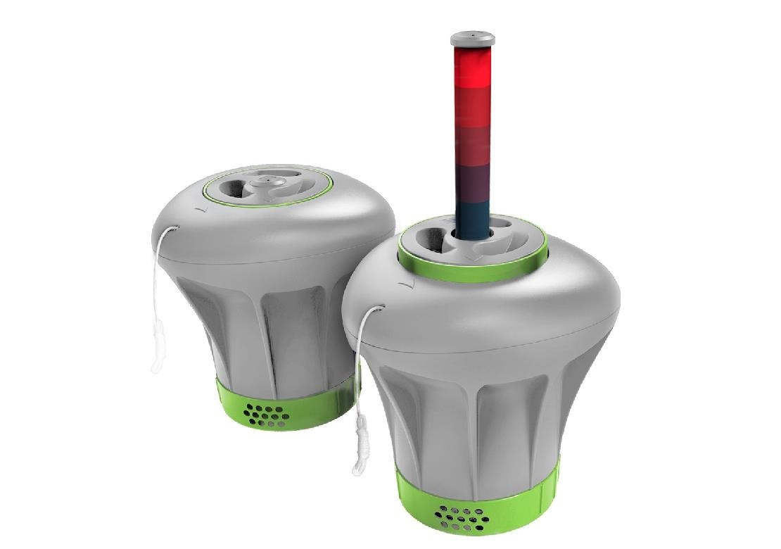 Veľký dávkovač chlóru má integrovaný farebný ukazovateľ, ktorý vás upozorní na potrebu doplniť nové tablety. Indikátor postupne klesá, keď sa chemikália rozpúšťa.