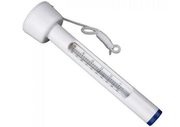 Plovoucí teploměr určený k měření teploty vody v bazénu.