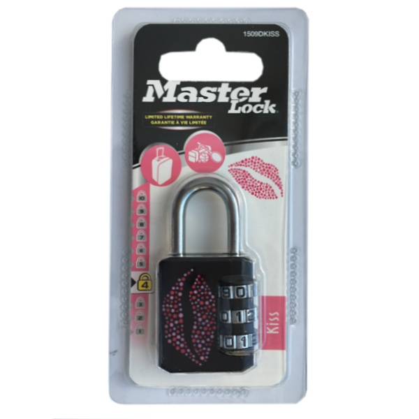 Visací kombinovaný zámok 1509EURDKISS pre všeobecnú ochranu. Zinkové telo zámku je široké 30mm. Oceľový thrám o priemere 5mm je dlhý 22mm a je vyrobený z chromovanej ocele a ponúka odolnosť proti rezaniu a prerezaniu. Vlastné nastavenie 3-miestneho kombinovaného zámku ponúka pohodlie bez kľúča.