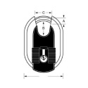 Telo z nerezovej ocele s titánovou úpravou odolnou voči korózii a poškodeniu. Skrytý trestň z kalenej ocele s priemerom 7 mm odolný voči prestrihnutiu. Vložka so 4 stavítkami. Dvojitá západka odolná voči vypáčeniu.