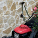 Reťaz s hranatými očkami z kalenej ocele o dĺžke 1,5 m. Tlaková hrúbka materiálu očka je 8 mm. Nylonový obal chrániaci reťaz proti mechanickému poškodeniu. Vysoká odolnosť proti prestrihnutiu. Integrovaný zámok s diskovou cylindrickou vložkou. 4 kľúče (súčasť balenia).