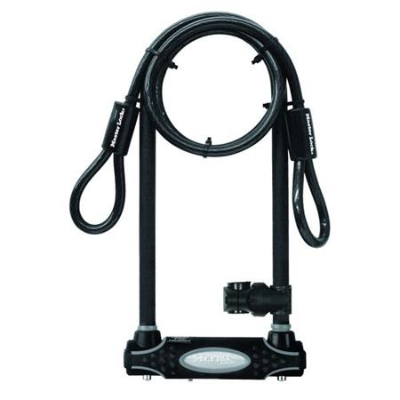 Ichoda zámku a trmen o priemere 16 mm z tvrdenej ocele odolnej voči počasiu. Vinylový potah trmenu zabraňuje poškrabaniu laku. Zámok obsahuje diskovú cylindrickú vložku odolnú proti vyhmataniu a dvojitú západku odolnú proti vypáčeniu. Navyše zámok obsahuje 1 200 mm dlhé oceľové lanko o priemere 10 mm pre dodatočnú ochranu. Krytka kľúčovej dierky bráni vniknutiu nečistôt. Súčasťou balenia je držiak pre praktické skladovanie a 4 ks kľúčov.