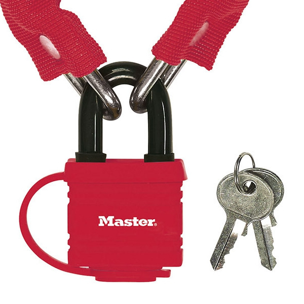 Zpevnený oceľový reťaz s oceľovým visacím zámkom je 90 cm dlhý a obsahuje oceľové spojky o priemere 6 mm, ktoré odolávajú rezu. Nylonový kryt reťaze zabraňuje škrabaniu. Visací oceľový zámok o priemere 40 mm je odolný voči poveternostným vplyvom. Plastový kryt na visacom zámku zabraňuje škrabaniu. Tretia s priemerom 9 mm je vyrobená z ocele pre odolnosť voči rezu. Obsahuje 4kolíkový valec zabraňujúci vyhmatávaniu a dvojitú západku odolnú voči vypáčeniu.