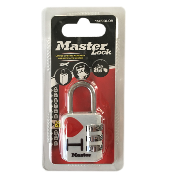 Visací kombinačný zámok 1509EURDLOV pre všeobecnú ochranu. Zinkové telo zámku má šírku 30mm. Oceľová vložka s priemerom 5mm je dlhá 22mm a je vyrobená z chrome ocele a ponúka odolnosť proti rezu a preťatiu. Vlastné nastavenie 3-ciferného kombinačného zámku ponúka pohodlie bez kľúča.