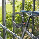 Oceľové lanko s priemerom 10 mm a dĺžkou 1 800 mm má vinylové potiahnutie, ktoré zabraňuje poškriabaniu laku. Obsahuje integrovaný nastaviteľný 4-ciferný kombinačný zámok (10 000 možností) a držadlá pre ľahké uchopenie zámku. Súčasťou balenia je aj držiak pre praktické skladovanie.