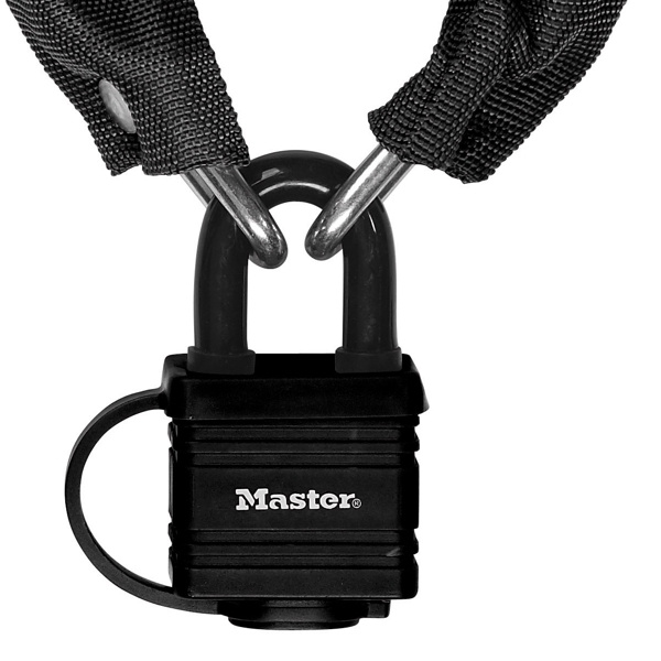 Pevný oceľový reťaz s oceľovým visacím zámkom je 90 cm dlhý a obsahuje oceľové spojky s priemerom 6 mm, ktoré odolávajú rezaniu. Nylonový kryt reťaze zabraňuje poškriabaniu. Visací oceľový zámok s priemerom 40 mm je odolný voči poveternostným vplyvom. Plastový kryt na visacom zámku zabraňuje poškrabaniu. Tŕň s priemerom 9 mm je vyrobený z ocele pre odolnosť proti rezaniu. Obsahuje 4-kolíkový valec zabraňujúci vyhmatnutiu a dvojitú západku odolnú voči vypáčeniu.