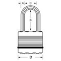 - Visací zámok so šírkou 45 mm s telom zo vrstvenej ocele spevnené titanom pre vyššiu odolnosť a spoľahlivosť.