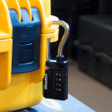 Visací kombinovaný zámok s šírkou 35 mm pre zavazadlá schválený agentúrou TSA. Kovové telo zámku je odolné voči poškodeniu. Trehom z ocele s priemerom 6 mm je odolný voči prestrihnutiu a prekríženie. Obsahuje nastaviteľnú 4-cifernú kombináciu zámku.