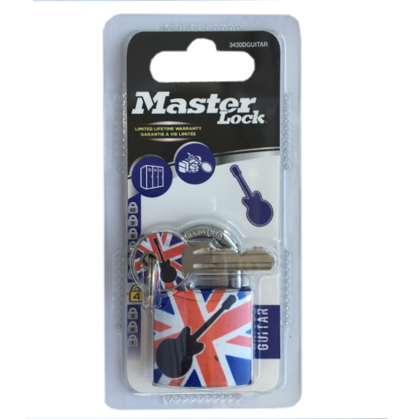 Visací zámok 3430EURDGUITAR pre všeobecnú ochranu z pevného hliníku o šírke 30 mm. Hliníkové telo zámku s povrchovou úpravou odolnou proti poškodeniu a korózii. Tŕň z ocele o priemere 5 mm odolný proti prestrihnutiu. Ponúkame v 4 možných variantoch s rôznymi potlačami.