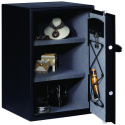 2 nastaviteľné police, trezor vypolstrovaný kobercem