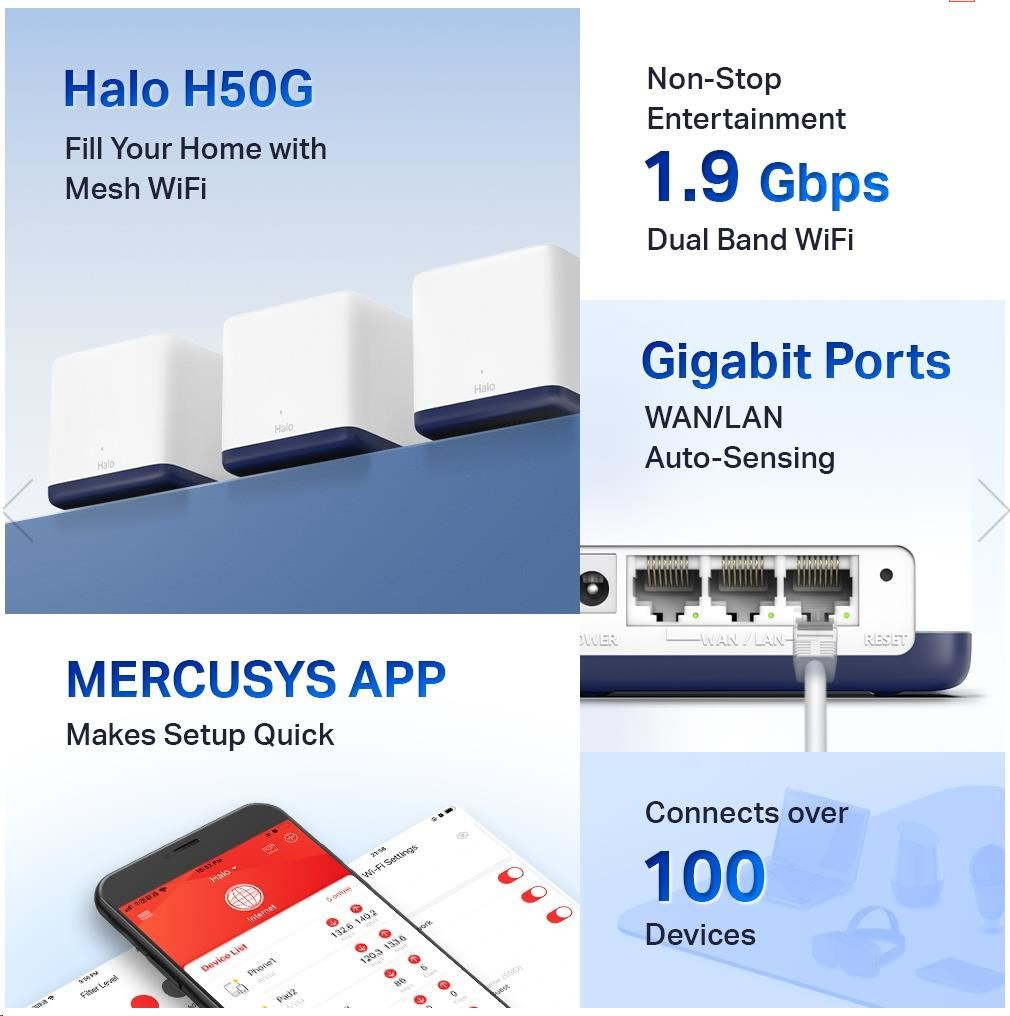 1.9 Gb/s Dual Band WiFi - Halo H50G poskytuje rýchle a stabilné pripojenie pre viac ako 100 zariadení s rýchlosťou až 1 900 Mb/s a spolupracuje s hlavnými poskytovateľmi internetových služieb (ISP) a modemami.
