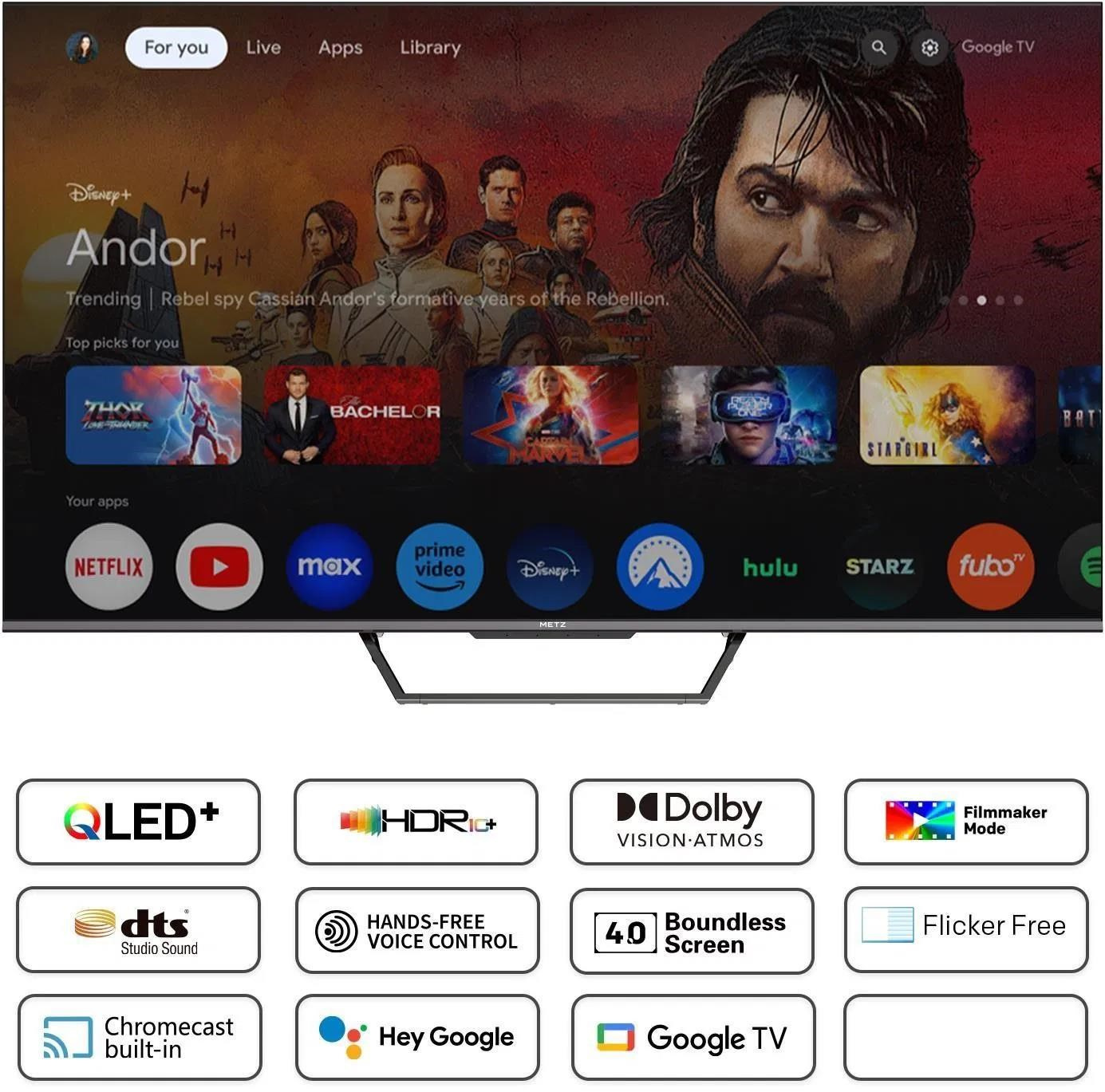 Chytrá televízia Metz 50MQD7500Z využíva operačný systém Google OS, preto na jednom mieste nájdete viac ako 8000 aplikácií a veľa ďalšieho obsahu. K dispozícii bude aj ovládanie hlasom, takže bude vyhľadávanie aplikácií, programov alebo ovládanie televízie a chytrých zariadení úplná hračka.