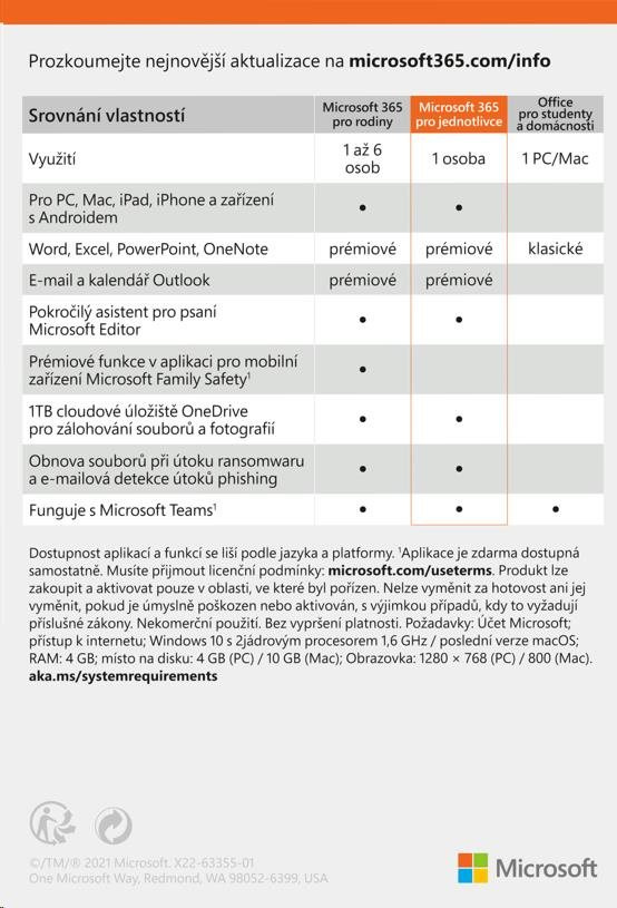 Microsoft 365 pro jednotlivce ENG (1 rok)
