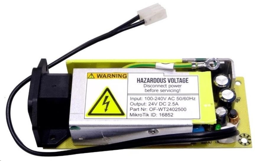 MikroTik 24V2APOW je náhradný interný napájací zdroj, ktorý je špeciálne navrhnutý len pre niektoré zariadenia MikroTik. Celkový výkon zdroja je 60 W pri 24 V a maximálnom prúde 2.5A. Kompatibilita s týmito modelmi CCR1009-7G-1C-1S+, CRS317-1G-16S+RM..