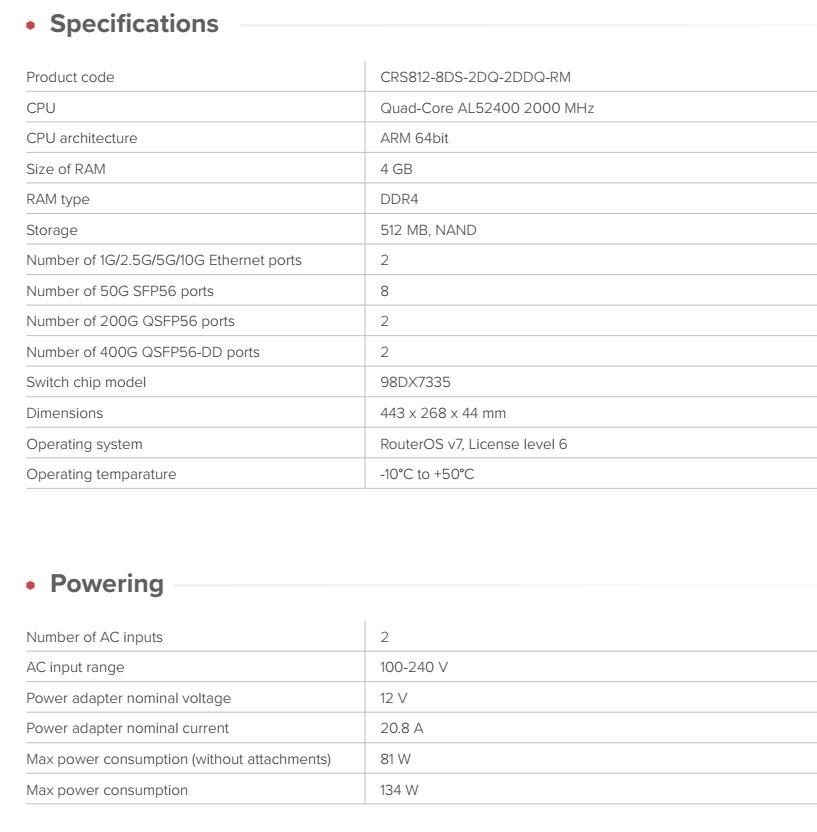 MikroTik CRS812-8DS-2DQ-2DDQ-RM 2x 400G QSFP-DD, 2x 200G QSFP56, 8x 50G SFP56, 2x 10GE Cloud Router Switch