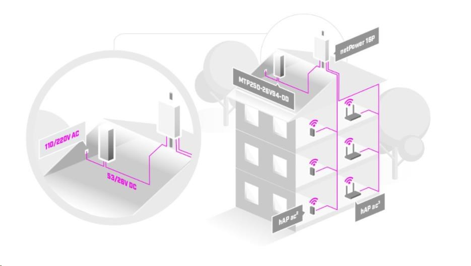 Vonkajší AC/DC zdroj v odolnom kovovom šasi s výstupným napätím 26 V, max. výstupný prúd 9.4 A, 250 W celkový výkon vhodný pre produktový rad netPower spoločnosti MikroTik. Šasi má certifikát IP67 s extra ochranou proti prachu a vlhkosti. Napájací zdroj je ukončený dvoma oddelenými káblami bez konektorov - vstupným 3-žilovým káblom 230 V AC (100 - 240 V AC) a výstupným káblom DC