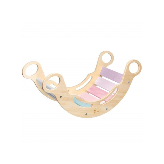 Montessori duhová houpačka 5in1 natur, lakované okraje, duhové desky