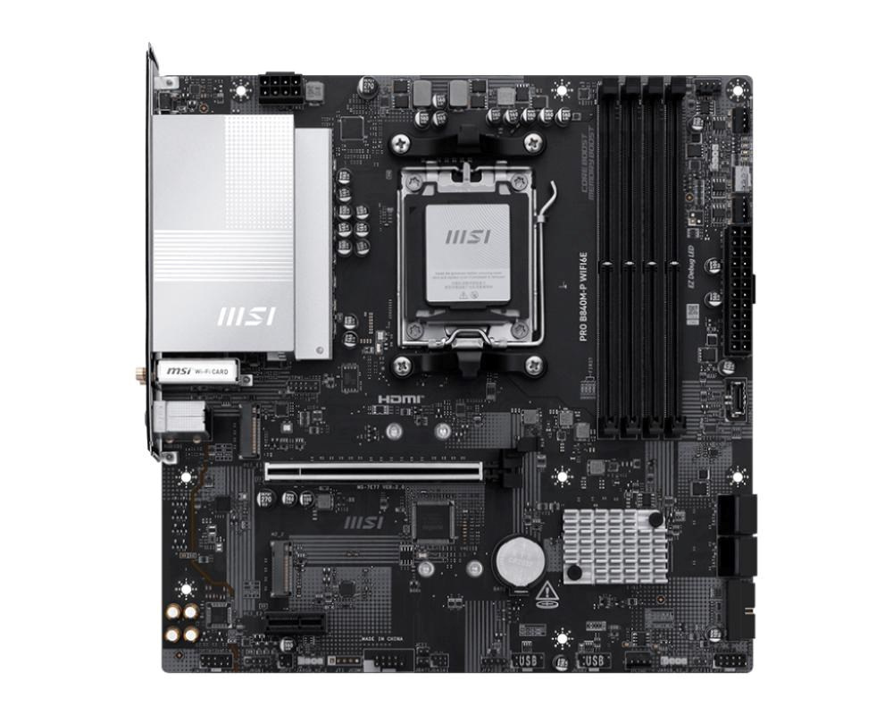PRO B840M-P WIFI6E ponúka jednoduchý dizajn s harmónickým strieborným farebným schémom, ktorý dokonale zapadne do bielych aj čiernych počítačových zostáv. Je navrhnutá s množstvom exkluzívnych funkcií MSI, Wi-Fi 6E s EZ Antenna, 2.5G LAN a PCIe 4.0 M.2, pripravená na procesory AMD Ryzen™ 9000 série.